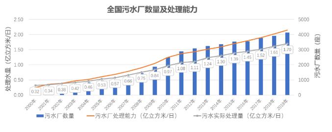 污水處理量:截至2019年底,全國(guó)城市和縣城污水處理廠共4140座,污水實(shí)際處理總量達(dá)到1.7億m3/d,污泥產(chǎn)量約6000萬(wàn)噸/年(80%含水率)。