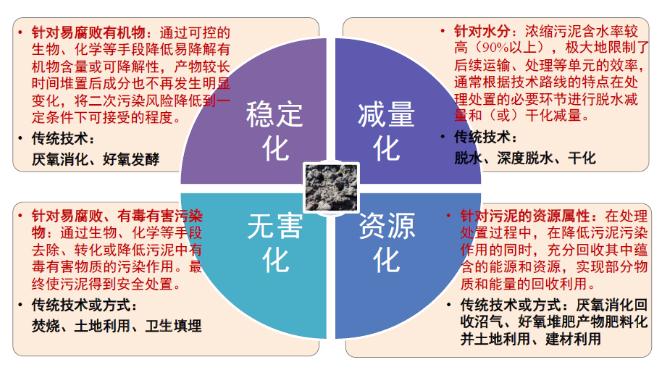 污泥處理處置原則:“安全環(huán)保、循環(huán)利用、節(jié)能降耗、因地制宜、穩(wěn)妥可靠”,最終實(shí)現(xiàn)減量化、穩(wěn)定化、無(wú)害化、資源化。