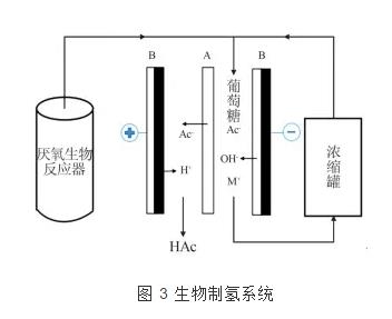 燃料電池與bmed技術(shù)的結(jié)合,為能源的發(fā)展拓展了新方向。在生物制氫方面,jing tang等提出一種集成發(fā)酵制氫和產(chǎn)物分離為一體的生物制氫系統(tǒng),見(jiàn)圖 3。