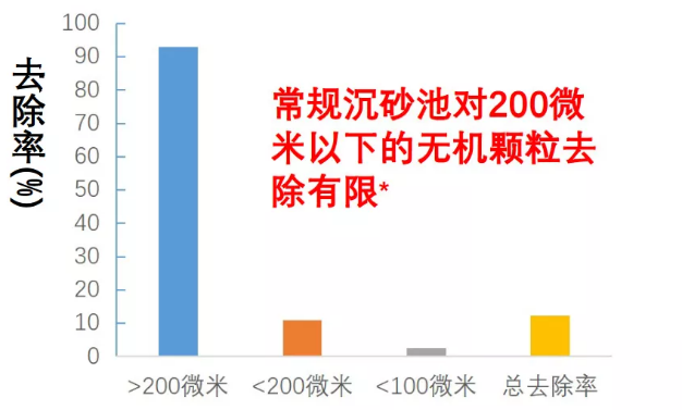 除了上述的問題以外,還有些地區(qū)的沉砂池根本攔截不住砂粒,但是生物池內(nèi)的污泥濃度中mlvss占比卻極低,這主要是因為現(xiàn)階段標(biāo)準(zhǔn)設(shè)計的沉砂池都是以去除0.2mm的砂粒為主要去除對象的,如果進水的無機砂粒粒徑小于0.2mm,相對密度低于2.5的,就不能被沉砂池有效的去除,造成生化段活性污泥的無機成分增多。