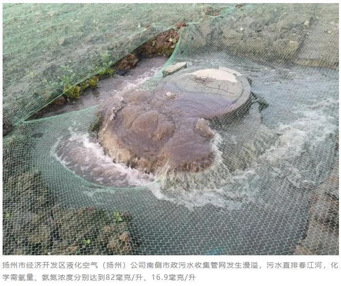 督察發(fā)現(xiàn),部分區(qū)域管網(wǎng)破損、污水溢流問題多發(fā)。12月10日,督察組在揚(yáng)州市經(jīng)濟(jì)開發(fā)區(qū)春江路液化空氣(揚(yáng)州)公司南側(cè)發(fā)現(xiàn)兩處污水管網(wǎng)漫溢口,大量污水排入春江河,在河面形成明顯的污染帶。當(dāng)?shù)貙iT開挖溝渠用于污水導(dǎo)流,表明該問題已存在較長時(shí)間。