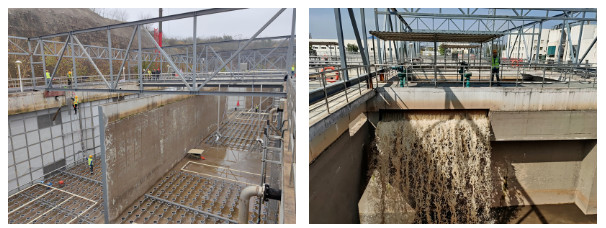 (白塔污水處理廠三期生反池南側(cè)一組通水前后)