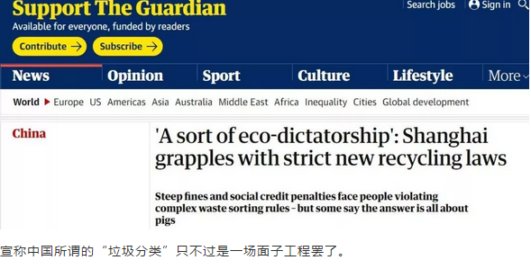 如今中國已經(jīng)響應(yīng)了世界的要求,進(jìn)行了國史上第一次垃圾分類舉措。然而,那個2年前說咱們中國垃圾太多,要求我們搞垃圾分類的英國《衛(wèi)報》此時又跳了出來,這次他們卻拿出了另外一副面孔,在一篇最新的報道中開始指控我們嚴(yán)格的垃圾分類制度是“環(huán)保獨裁”。
